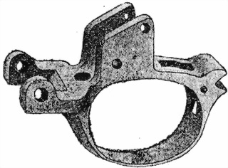 12. Прицѣльная колодка имѣетъ двѣ стойки съ кривою поверхностью и ушки съ дырами, въ которыя ввинчивается винтъ прицѣльной рамки. (Фиг. 12).