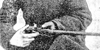 Для опредѣленiя сторонъ ружья-пулемета надо стать лицомъ по направленiю полета пули.