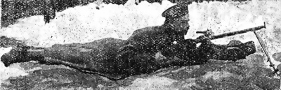 19. Для стрѣльбы съ разсѣиванiемъ, передъ командой "Огонь", подается команда "съ разсѣиванiемъ". Самое разсѣиванiе производится такимъ образомъ, что пулеметчикъ, пользуясь тѣмъ шатанiемъ, которое имѣетъ ружье-пулеметъ въ сошкахъ, не измѣняя своего положенiя, перемѣняетъ точки прицѣливанiя въ указанныхъ командою предѣлахъ разсѣиванiя.