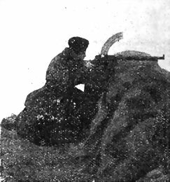 3. Пулеметчикъ заряжаетъ и наводитъ ружье-пулеметъ, производитъ стрѣльбу и смазываетъ механизмъ во время стрѣльбы.