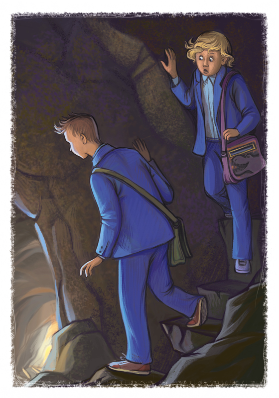 Мальчики осторожно поднялись по каменным ступеням к верхней пещере и прошли через неё к выходу на улицу. Там они подобрали свои школьные сумки, с удивлением обнаружив, что уже начало темнеть.