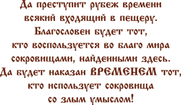 – Есть! – вдруг воскликнул он, указывая рукой на стену. Там возле входа в потайную пещеру была выгравирована надпись. Мальчики хором прочли её вслух: