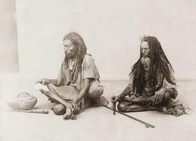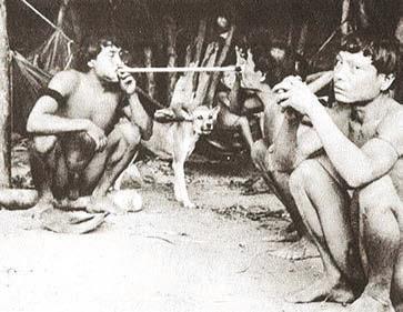 Рис. 0.1. Использование психотропных веществ адептами: а – индийские йоги (садху) под действием чараса (конопли); б – принятие галлюциногенной эпены в амазонском племени яномама. Этнографические фотографии начала XX в.