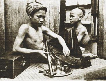 Рис. 0.2. Использование наркотических веществ обычными людьми для ощущения присутствия божества и удовольствия: а – курильщик опиума из Кантона (Бакбо, Северный Вьетнам), начало XX в.; б – курильщица гашиша из Ирана. 1901.