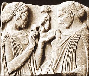 Рис. 0.4. Древнегреческие божества плодородия Деметра и Персефона с «волшебными» грибами в руках. Барельеф из Элевсина, где проводились мистерии. 450 г. до н. э.