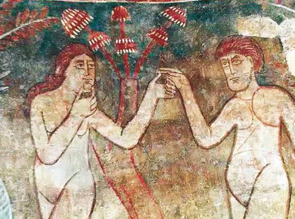 Рис. 0.5. Раннехристианская фреска, изображающая вкушение плода познания, под которым некоторые исследователи видят красный мухомор.