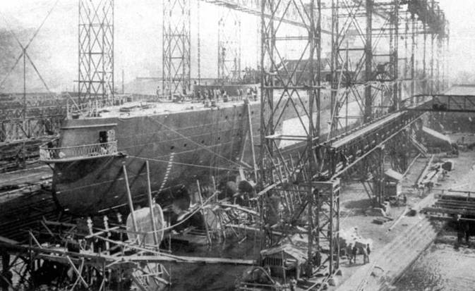 Линейный крейсер «Хией» перед спуском на воду. Ноябрь 1912 г.