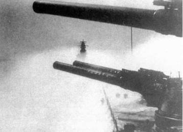 В ночь с 14 на 15 ноября 1942 года в водах Гуадалканала произошел очередной ночной бой. «Киришима» был тяжело поврежден. Американцы использовали радиолокационную станцию «Вашингтона» и добились девяти попаданий 406-мм. В результате оказались разбиты все башни главного калибра, выведено из строя рулевое управление, корабль получил большое количество пробоин, в том числе и подводных.