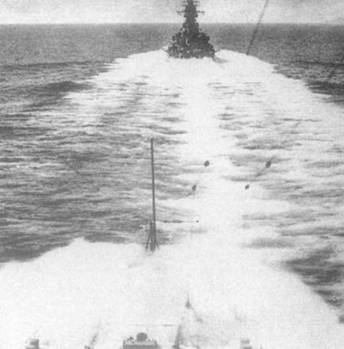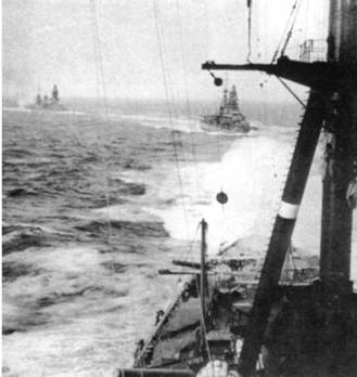 Линейный крейсер «Конго» после второй модернизации 1935-37 гг. (два фото) и в боевом походе в 1942 г. (фото в середине)