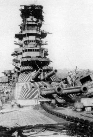 Линкор «Харуна» после налета американской авиации. Осень 1945 г.