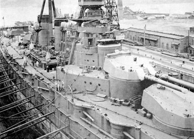 Линейный крейсер «Хией» в доке 1915 г. (фото вверху)