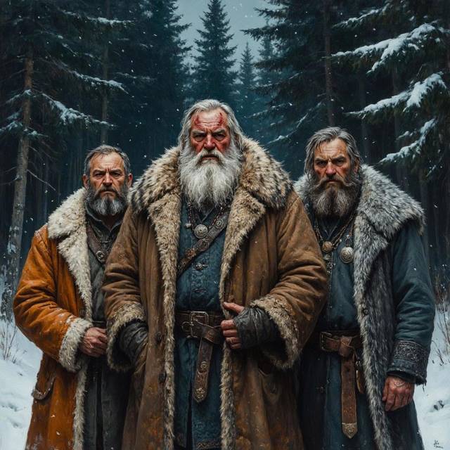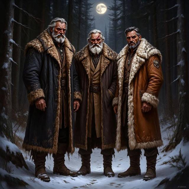 Троица вошла колоритная, не сказать чего лишнего. Но мне напомнила очень бессмертный образ из Гайдаевских фильмов. По центру стоял здоровый, почти с Гарасима, дед в медвежьей шубе. Которая, кажется, кроме функциональной роли носила и сакральную. Шкура с башки косолапого, натянутая капюшоном на голову сивого старца редких статей, намекала на это вполне прозрачно. Так редко кто носил просто для красоты.