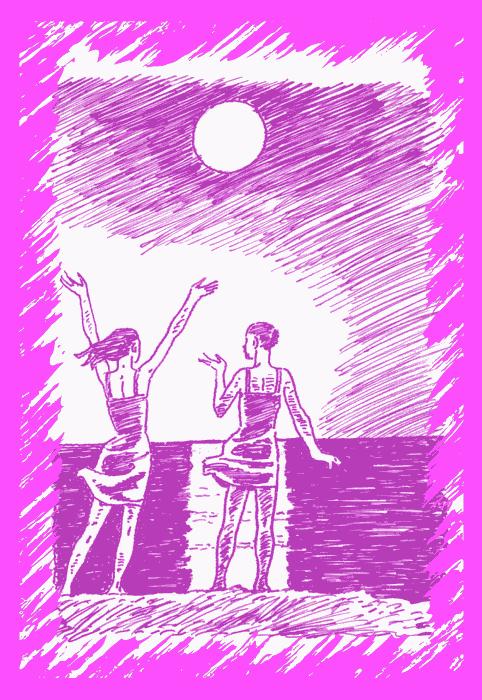 Солнце уже начинало свой ранний разбег и с каждой минутой все смелее золотило поверхность воды. Когда Елена спустилась к океану, девочки уже собрались. Евгения, одетая в летящее светло-малиновое платье, рассказывала о волшебном танце.