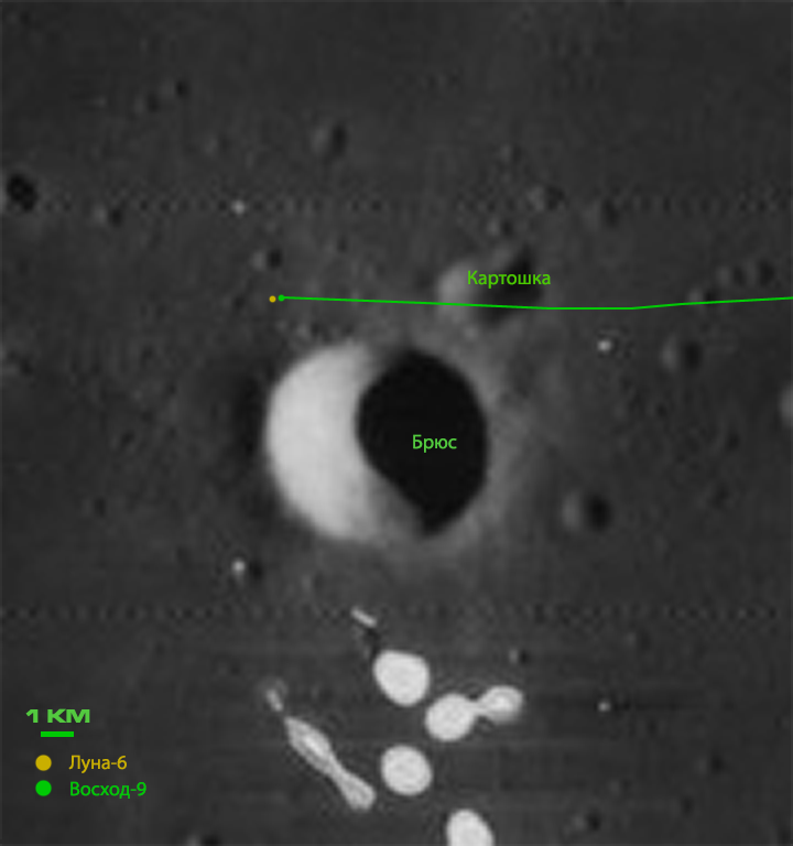 Что касается места высадки, то выбор стал непростым. Центральный Залив это лишь один из вариантов, но в итоге выбрали именно его. Изначально, ориентиром должна была стать «Луна-6», удачно севшая в этом районе целых шесть лет назад, но не сумевшая передать панораму. Собственно, станция и должна была разведать этот район перед будущей высадкой людей, но позже выяснилось, что она немного промахнулась и села северо-восточнее, почти вплотную к семикилометровому кратеру Брюс. Местность там не такая ровная, но все же, решили садиться именно туда. Если получится добраться до кратера, то это станет огромным подарком науке.