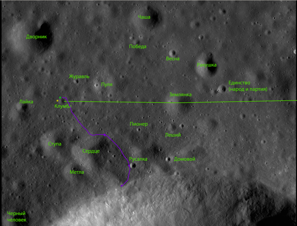 Когда экипажам показали фотографии местности, на которой им предстоит работать, они первым делом взяли фломастеры и не жалеючи расписали названия самых ярких кратеров и деталей рельефа. Так на карте появились Лайка (другая собака из АИ, погибшая при испытании САС – прим.авт.), Картошка, Клумба, Русалка и другие. Были попытки запретить такую самодеятельность, недостойную советских людей, да и названия не всегда были идеологически выдержанными. Но космонавтов поддержал не только Королев, но и Каманин, прекрасно понимающий, каково будет запоминать все эти «прыщики» по номерам. С этой точки зрения простые и запоминающиеся названия намного удобнее.
