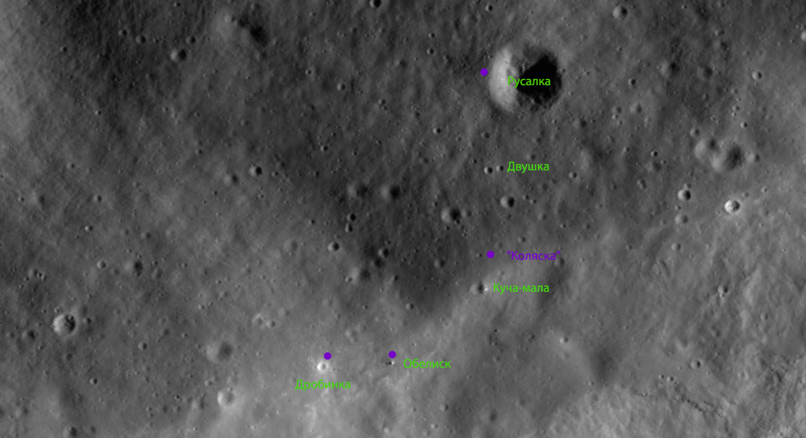 – «Заря», это перелетная ступень «Луны-6»! – воскликнул Юрий. – Я вижу место падения и постараюсь сделать снимки. Похоже, был взрыв, обломки четко видно, сильно разбросаны. С первого взгляда их на фоне светлой породы почти не видно.
