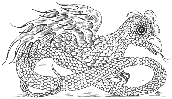 Одной из самых знаменитых мифических змей, водившихся в Ливии, был василиск, которого Исидор называл «царем змей», а Солин – «пагубой, равной которой нет на земле». В те времена он еще не приобрел ни петушиной головы, ни жабьего тела, ни крыльев, ни ног (от четырех до восьми), которые позднее появятся у средневековых василисков. По описанию Плиния, это была небольшая змейка, около тридцати сантиметров длиной, с ярко-белой отметиной на голове, напоминающей диадему. Обитала она в Киренаике (северо-восток современной Ливии) и славилась исключительно сильным ядом. Плиний рассказывает, как однажды всадник пронзил василиска копьем и яд, поднявшись по древку, убил не только человека, но и лошадь. Подобную историю передает и Лукан: римский воин, ударивший василиска копьем, был вынужден немедленно отсечь себе руку возле плеча.