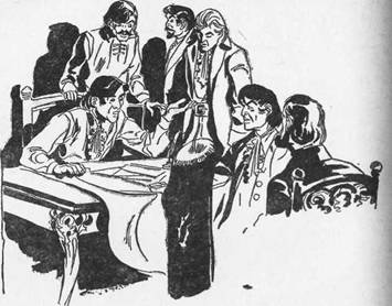 Заговорщики обсуждают свои планы в доме полковника Андраде (старинная гравюра).