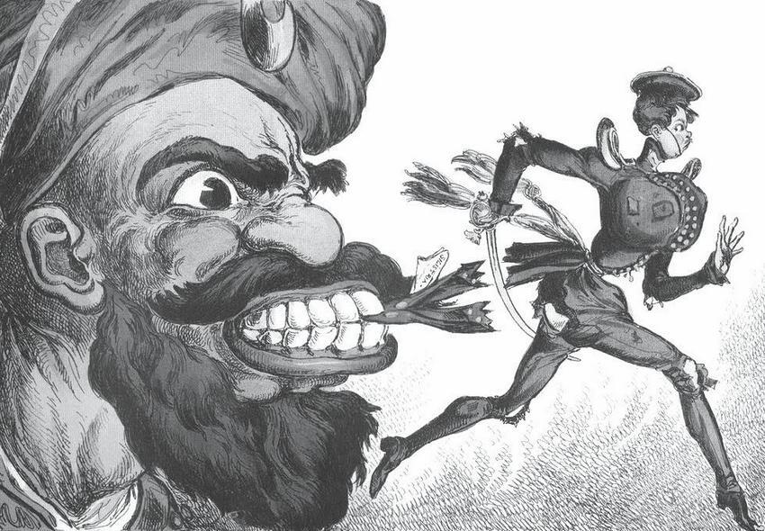 Горлис посмотрел на лист. То была злая карикатура на русских. На весь лист – огромная голова турецкого султана, который крепкими зубами прихватил за фалды форменной одежды испуганно убегающего русского императора (на Николая Павловича нисколько не похожего, но Горлис уже знал, что английские шаржисты именно так его рисуют). Царь, чтобы иметь возможность убежать, отрубает саблей эти фалды, в которых, кстати, запутался лист бумаги с надписью Silistria. Кроме того, из-за порванных штанов и зад царский слегка оголился.