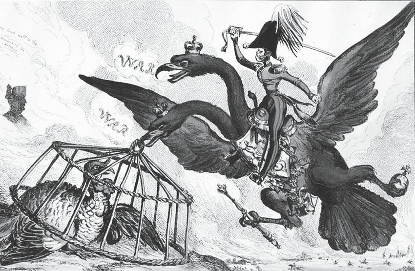 Аллегория. Вторая половина 1828-го – начало 1829 года. На заднем плане силуэт Наполеона, который предупреждает: «Европа, будь начеку, опасайся Калмыка…»