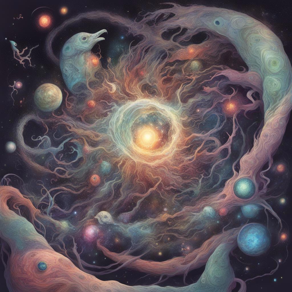 "Мир родился, когда Хаш-Кта осквернил Пустоту, уронив в неё своё Семя. Пытаясь избавится от него, Пустота отрыгивала и испражнялась материей и энергией, до тех пор, пока не смогла, наконец, очиститься. Из этих нечистот и образовалось то, что существа, наказанные обретением разума, называют «Вселенной».