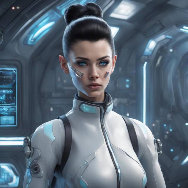 Весь её вид кричал: инопланетянка! Особенно глаза. Светло-голубые, с очень маленькими зрачками. Алекс сначала решил, что это какие-то высокотехнологичные линзы, потому как не привык видеть такой цвет в сочетании с очень чёрными волосами. Но нет: присмотрелся и понял, что никаких линз нет. Зато есть какой-то монокль. Не простая стекляшка, а целый прибор, выглядящий весьма футуристично.