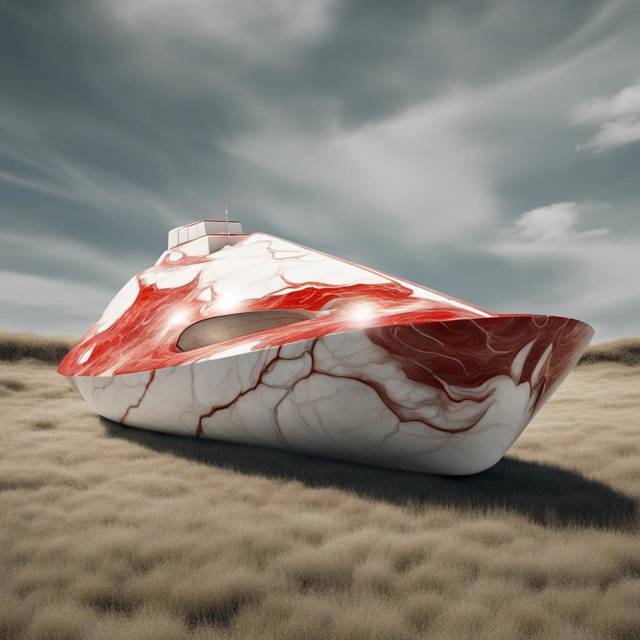 Второй… Хм… Каменный? Корпус сделан из чего-то полированного, напоминающего мрамор с красными прожилками. Форма этого корабля больше походила на ракету, нежели соседняя галера. Тем не менее, скорее всего, форма не была функциональной – у корабля тоже имелась палуба, хоть и крытая, в отличие от первого корабля.