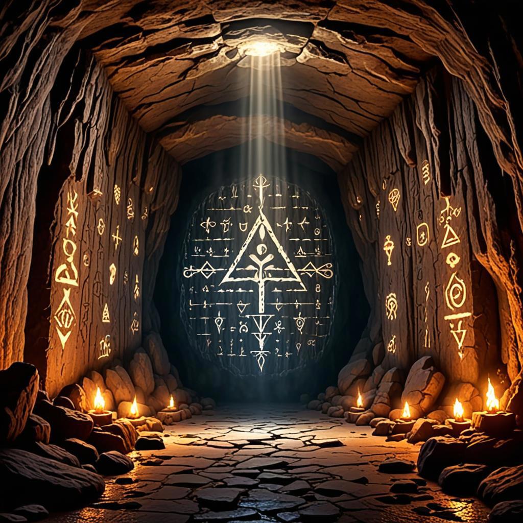 Врезавшись с разгона в скалу, он пробил в ней отверстие и сразу принялся заполнять стенки образовавшегося грота символами.