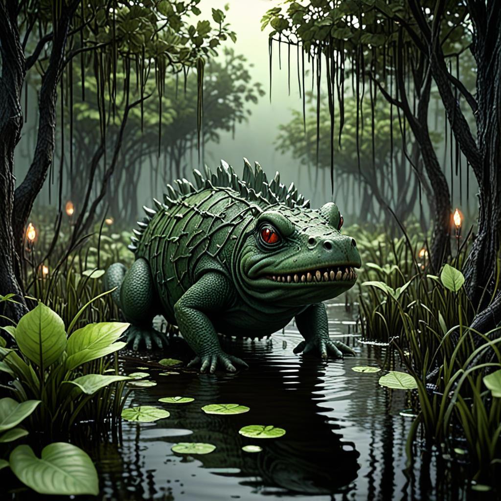 Тварь, до того момента просто напросто ходившая по поверхности воды как оп суше, молча повернулась в её сторону и занырнула в топь, не отходя от места, развеяв таким образом иллюзию, что типи мелкие. Принцесса-лиса попыталась убежать, но завязла в трясине. Не утонула, но и бежать быстро не могла. Разлитый по округе водный элемент очень мешал использовать техники перемещения.