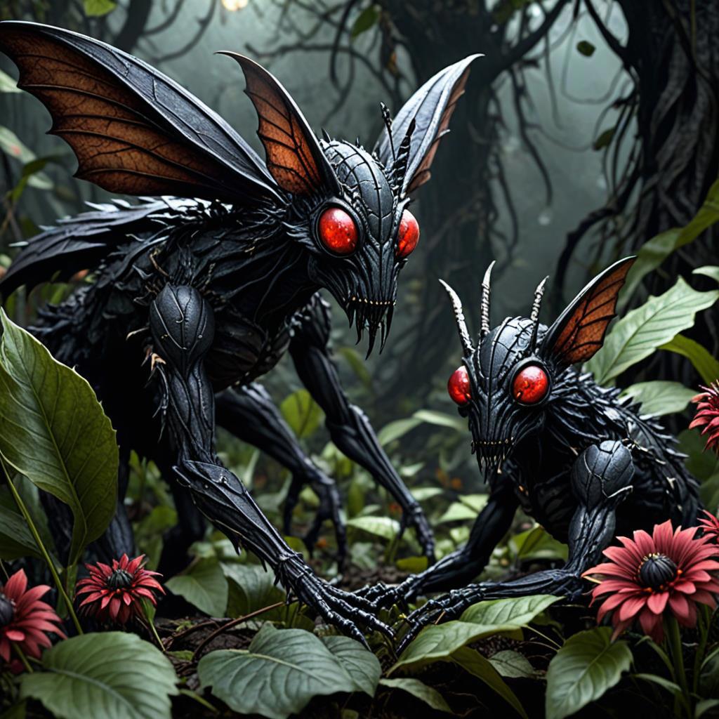 Скрываться уже не было причин и враг показался. Множество антропоморфных существ, имеющих черты насекомых выглянули из укрытий. То, что они выглядели отдалённо похоже на людей как раз говорило о том. что твари относительно высокоуровневые и имеют какую-никакую родословную.