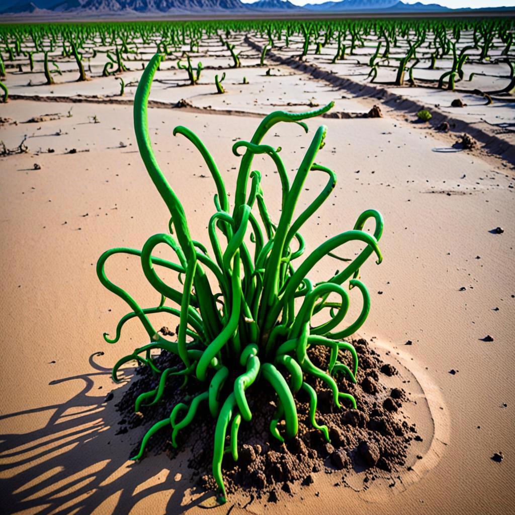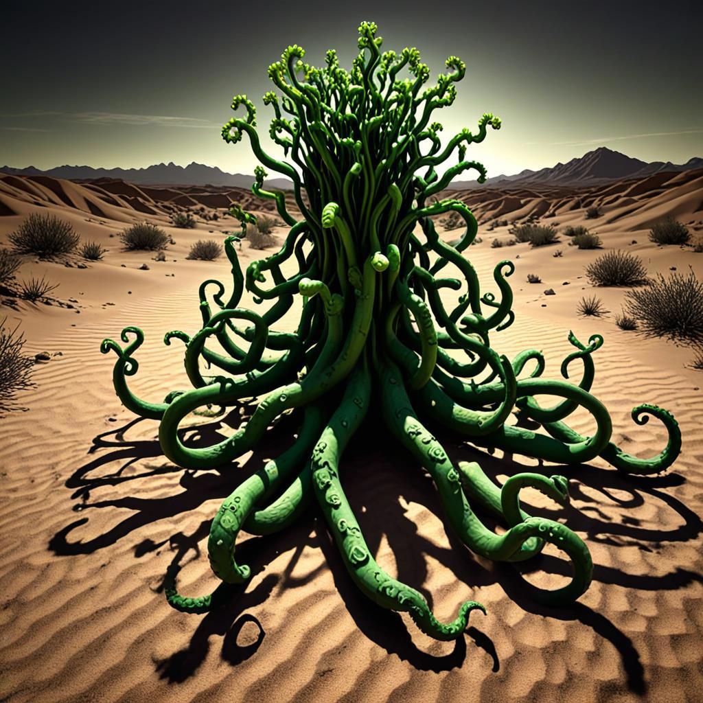 Разбросав песок и камни во все стороны, из под земли вылезло нечто, одновременно напоминающее и растение, и животное. Щупальца, похожие на ветви без листьев, казалось, покрыты корой, но в то же время более гибкие, чем какие-то деревяшки.