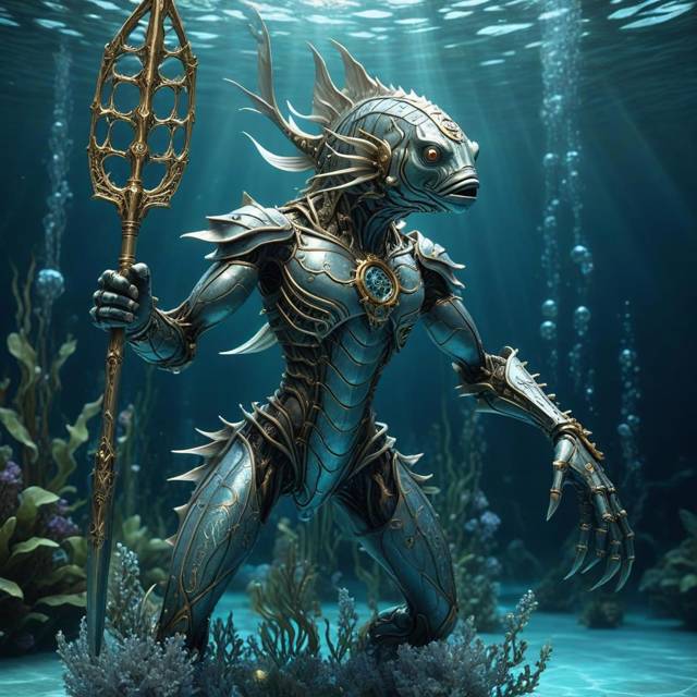 Эти существа имитировали подводных жителей: один напоминал человека-кальмара, второй имел черты рыбы, но с «лапами», в которых держал копьё. Естественно, артефакт, не простая заточка на палке.