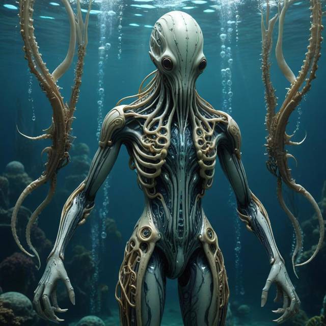 Похвалив себя за то, что приказал Морозной Ночи подавить свой уровень до смертной (сам, естественно, сделал то же самое), Алекс быстро переместился в сторону, спрятал и себя, и спутницу за подводный утёс. Он наблюдал за существами, которые, если верить Сфере Контроля, обладают разумом, хоть на вид и не производят такого впечатления. Что-то биомеханическое, на основе артефакторики. Очень похоже на то, что Алекс уже встречал на Двуликой Звезде.