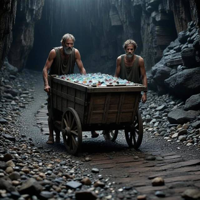 Развернулись и покатили тележку обратно в шахту, за новой порцией.