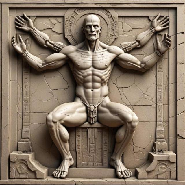 Пока разбирался с поиском чуждых элементов в памяти, наткнулся на воспоминания о фресках на стенах того храма четырёхруких: там имелось одно изображение, которое тогда он интерпретировал как жертвоприношение в честь закладки первого камня. А вот сейчас понимает, что там была изображена похожая ситуация!