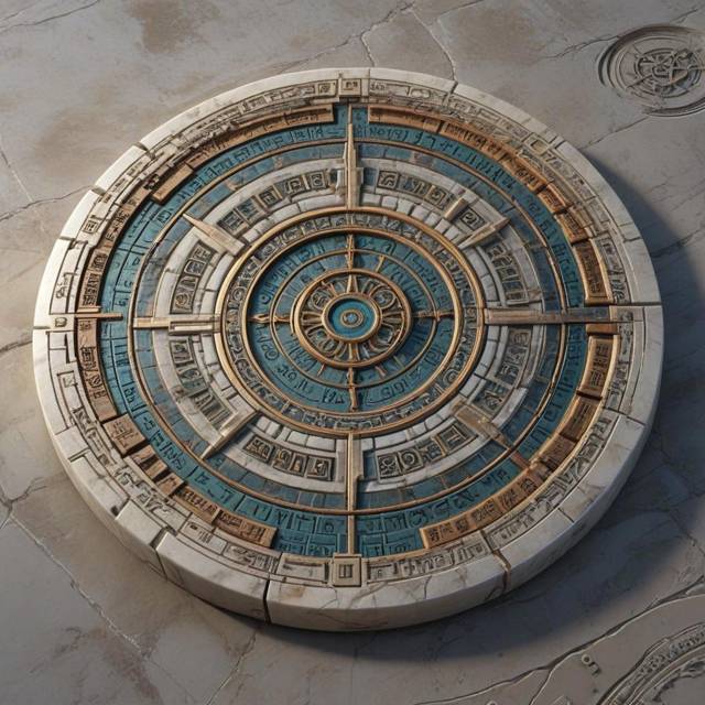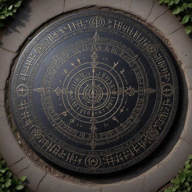 Неизвестно, какая плита была изначально, но теперь она где-то метров пять в диаметре и сплошь покрыта разными знаками, отдалённо напоминающими надписи на Небесной Стелле и личном Алтаре-Книге.