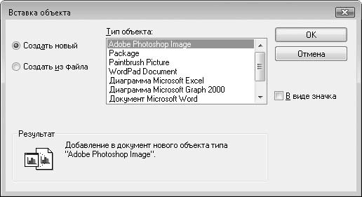 Рис. 6.21. Диалоговое окно Вставка объекта