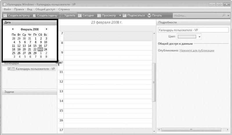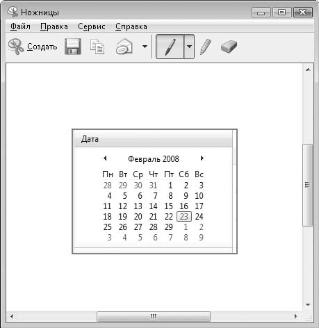 Рис. 6.28. Выделение фрагмента окна Календарь Windows