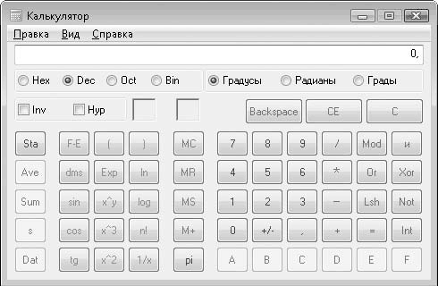 Рис. 6.31. Инженерный вид программы Калькулятор