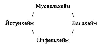 Происходит круговорот материи: Муспельхейм – Йотунхейм Нифельхейм – Ванахейм.