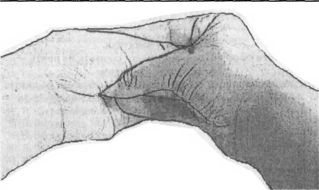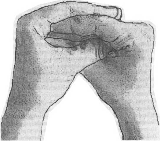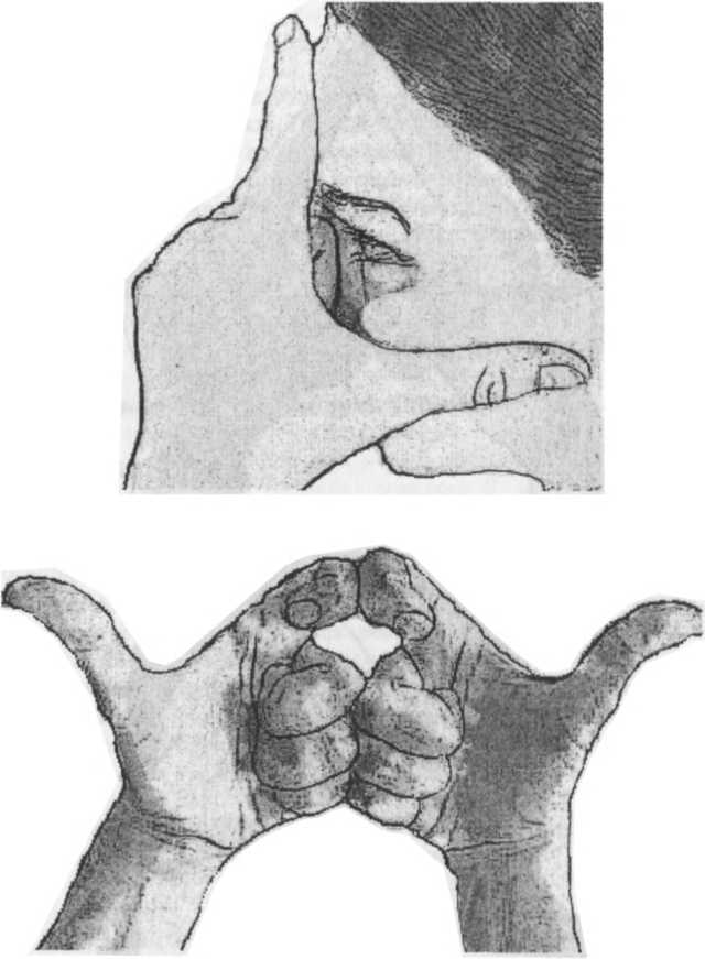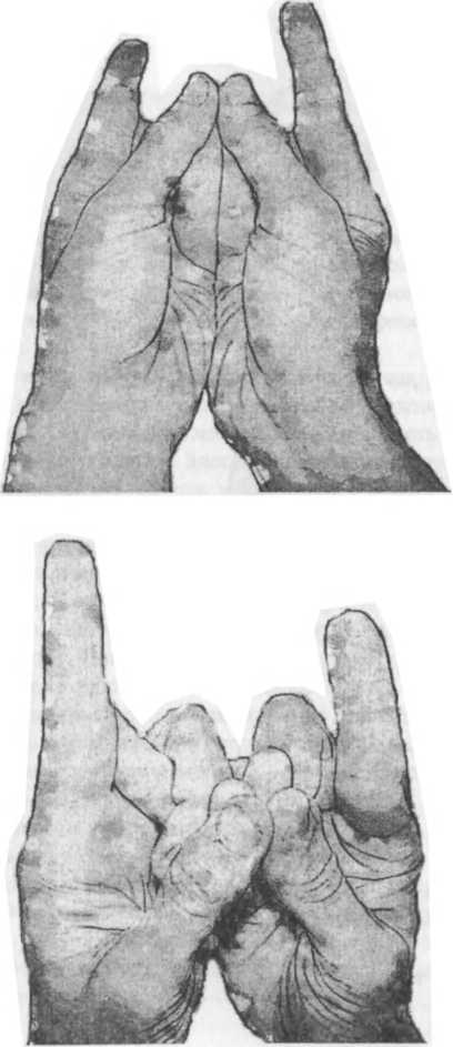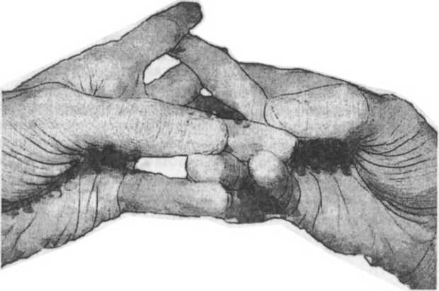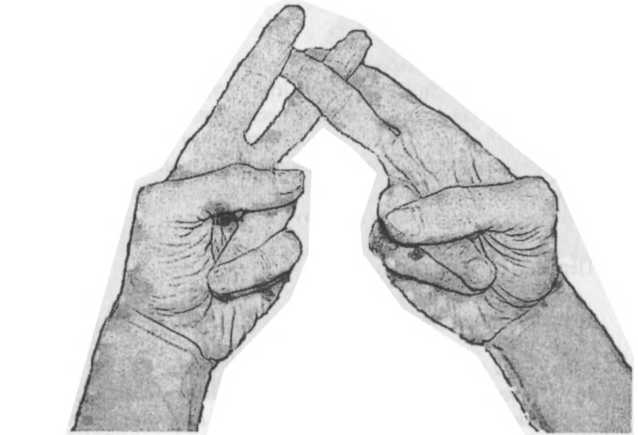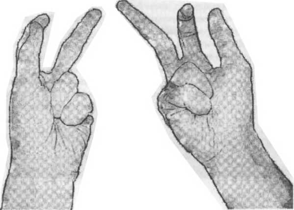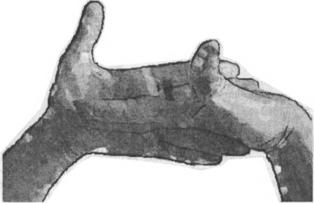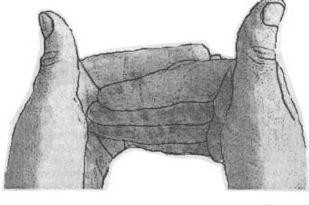 При этом большой палец левой руки прижимает кончик мизинца правой руки к ладони левой руки.