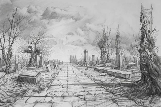 Под ногами истертые плиты. Большие, сложенные в широкую дорогу. Но травы между ними нет. Здесь вообще никаких растений нет. Все пепельное. Дорога. Редкие каменные заборчики по бокам. Оградка ажурная на склоне холма. Каменные кресты в самой дали, их почти не видно. И новый Город. Я стою прямо перед ним. Мешанина одноэтажных домов. А где-то на горизонте над бесконечной мозаикой крыш возвышается храм. Не скажу, сколько в нем метров. Много. Шпиль практически втыкается в нависшее мрачное небо.