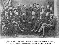 Менделеев прилагал все силы к умножению и сплочению «научной дружины», как он называл естествоиспытателей. В 1869 году вновь созданное Русское физико-химическое общество насчитывало 35 членов. Через десять лет, в 1879 году, их стало 119.