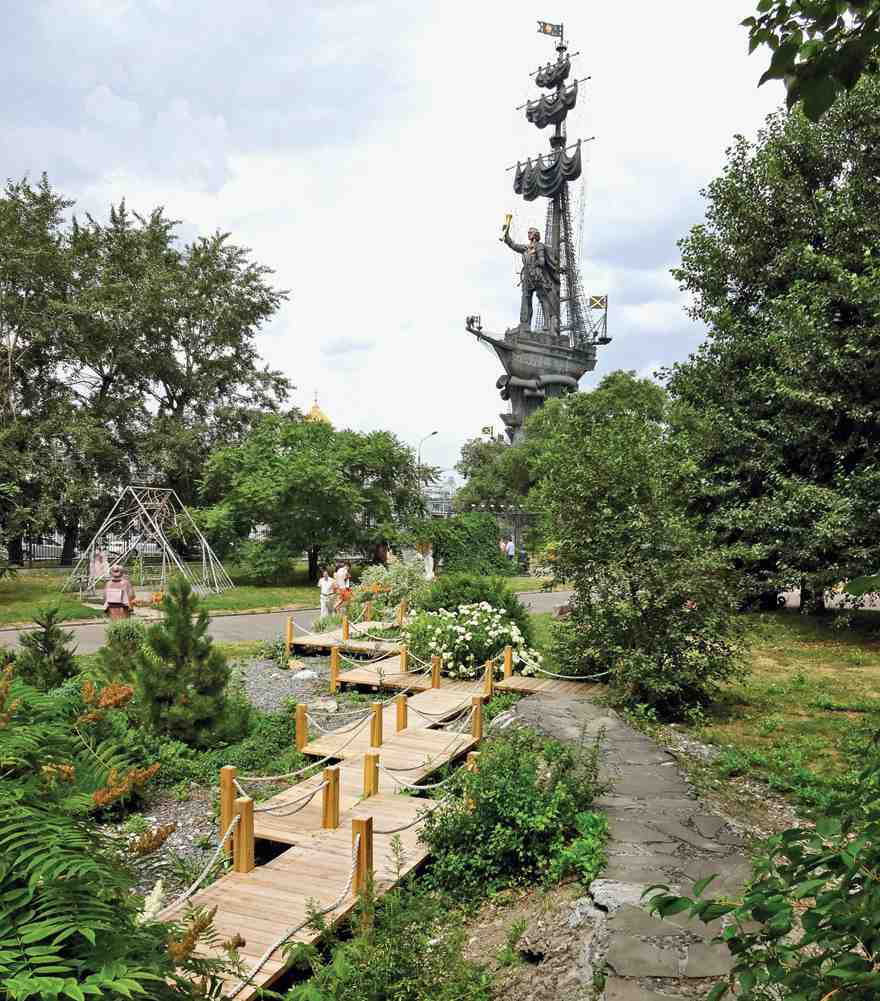 Настоящий зеленый оазис в центре Москвы, редко отмечаемый на картах. Здесь очень тихо. Днем никого, кроме праздных туристов и молодых мам с колясками, вы не увидите. Ближе к вечеру в местные кафе приходят посетители Центрального дома художника или просто поклонники тишины «Музеона». Но и тогда покой и уют этого места не нарушаются. Деревья, кустарники, цветники, скульптурные композиции; японский садик и водяная горка; бесчисленные цветы и увитые зеленью качели-беседки располагают к приятному отдыху до позднего вечера. Ни музыки, ни шума.