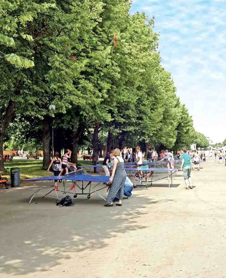 – несколько десятков столов для настольного тенниса со всем необходимым инвентарем;