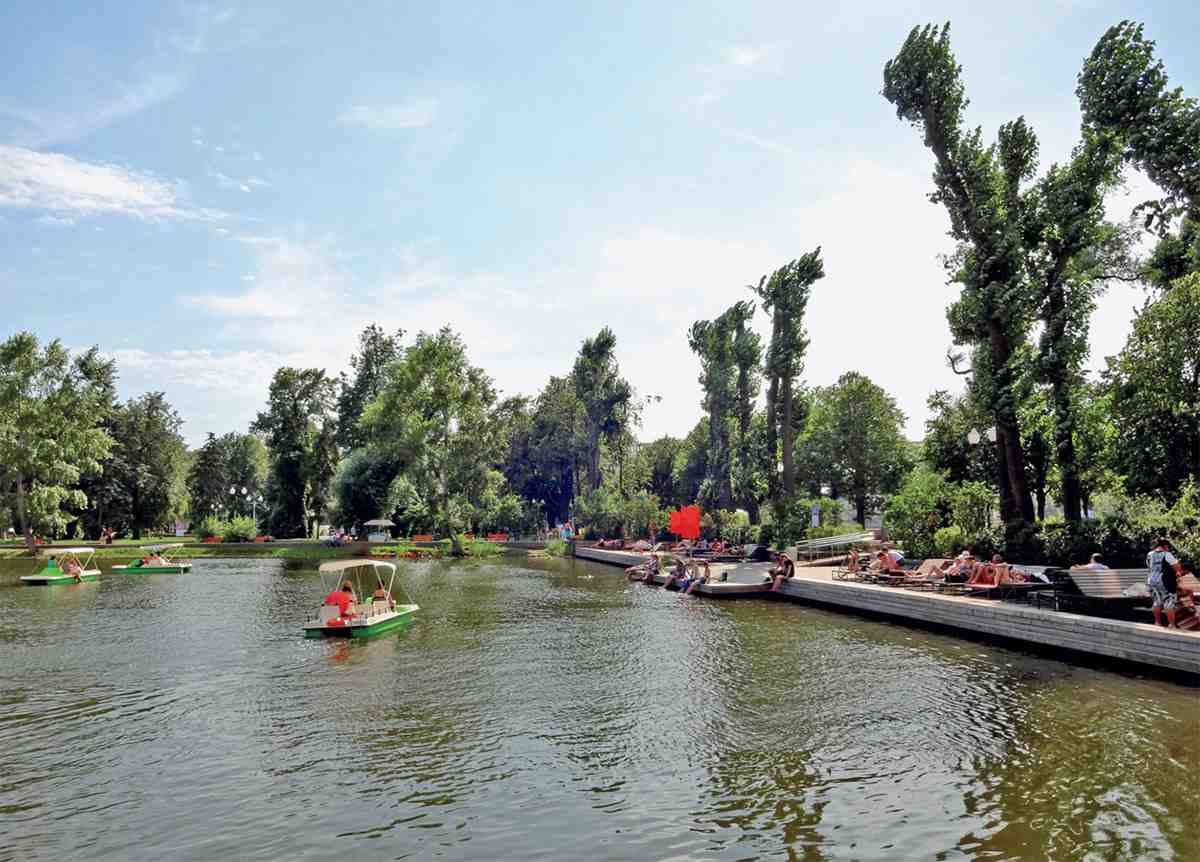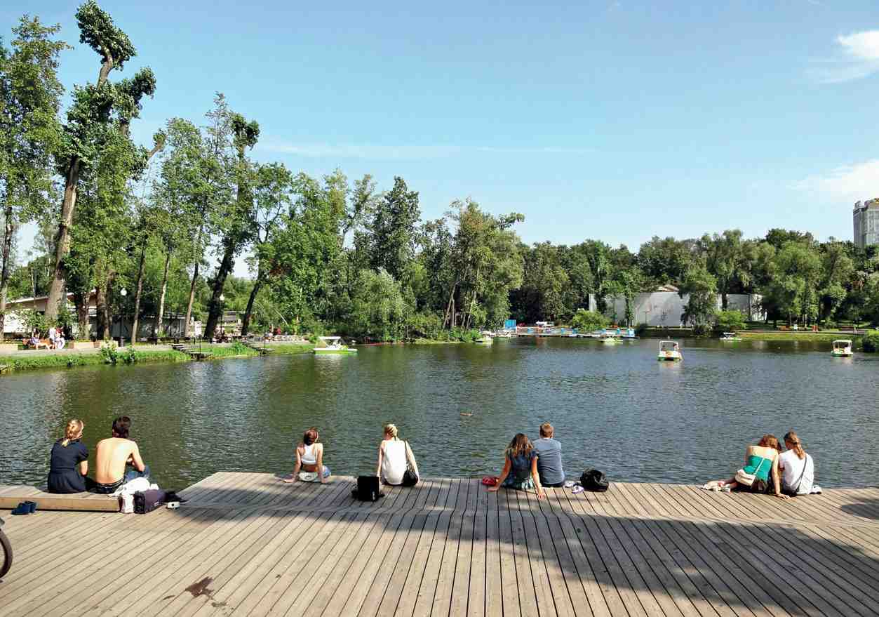 Оставляем эту часть парка позади и направляемся по берегу реки к Нескучному саду. У моста вы увидите пристань. Летом работает круговой часовой маршрут на катере вокруг Золотого острова. За 500 рублей вам покажут памятник Петру, Дом на набережной, Кремль, Балчуг, Водоотводный канал с видами на Болотную площадь и Лаврушинский переулок и, минуя ЦДХ и парк «Музеон», доставят обратно к причалу Парка им. Горького.