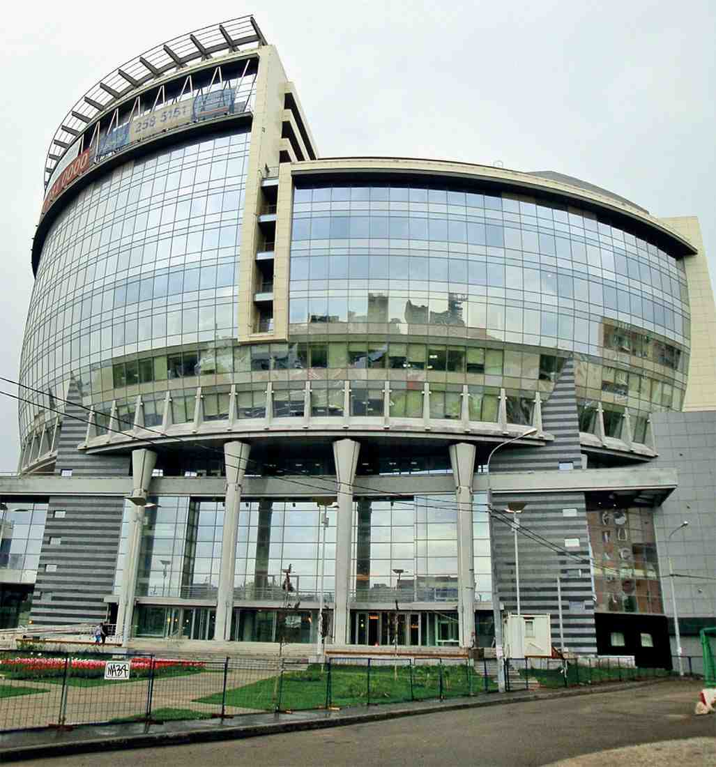 Огибаем с левой стороны театр и переходим дорогу к офисному зданию странной сферической формы.