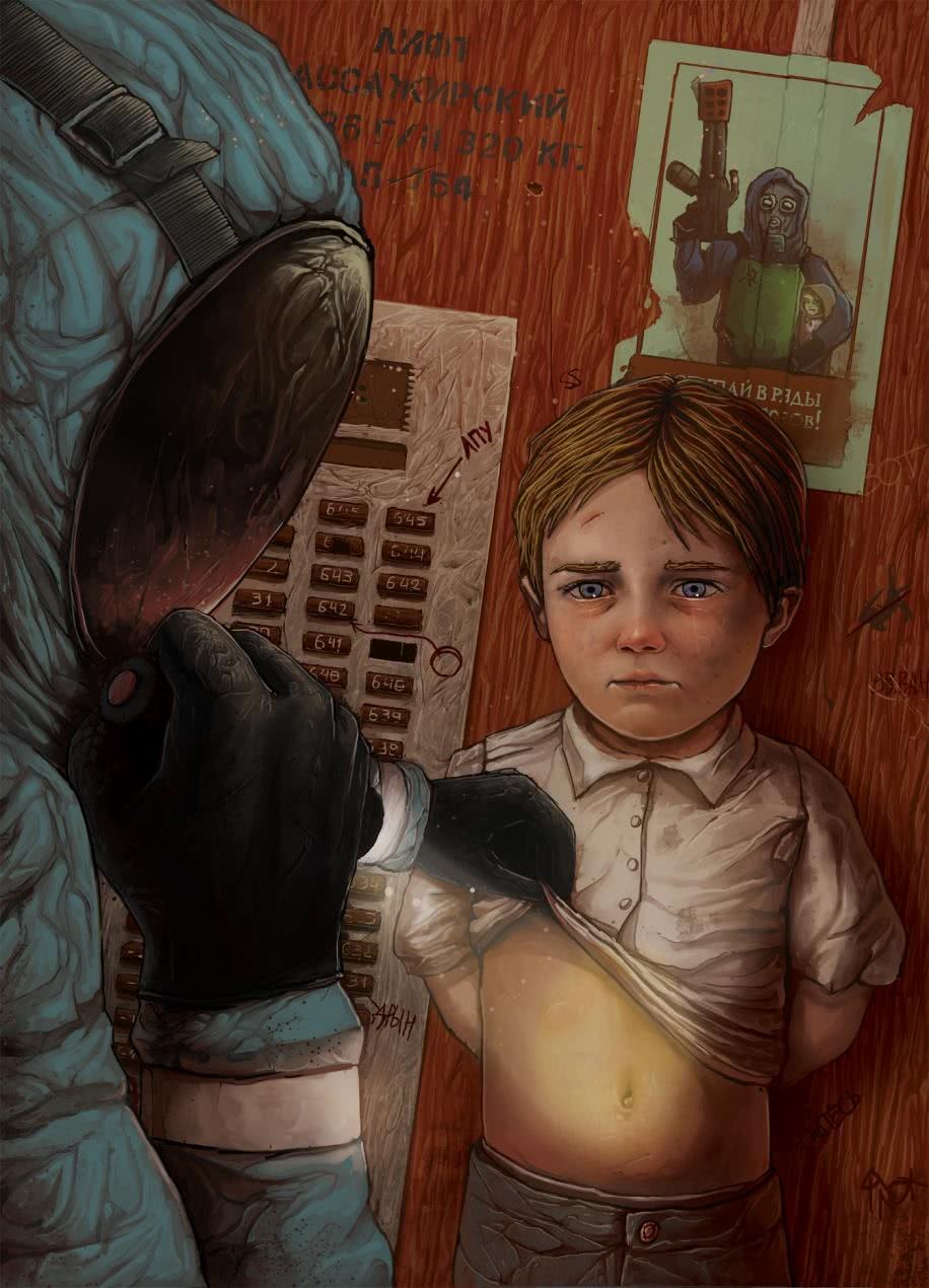 Человек в противогазе одной рукой держит рукоять огнемета, другой прижимает к себе растрепанную девчушку. Никто никогда не видел людей, развешивающих плакаты, листовки, подбрасывающих буклеты. Равно как никто не знает их художников. Новые листы появляются регулярно, а старые не снимают, пока рисунок не выцветет настолько, что его уже нельзя будет прочесть. Или пока хулиганы не пустят на самокрутки.