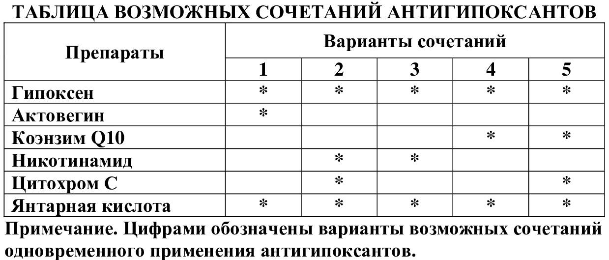 При комбинированном применениии антигипоксантов происходит усиление их действия.