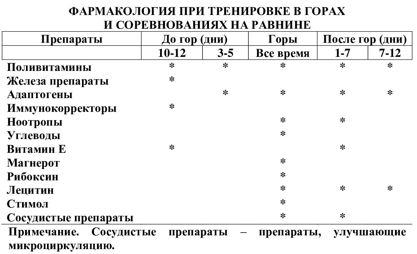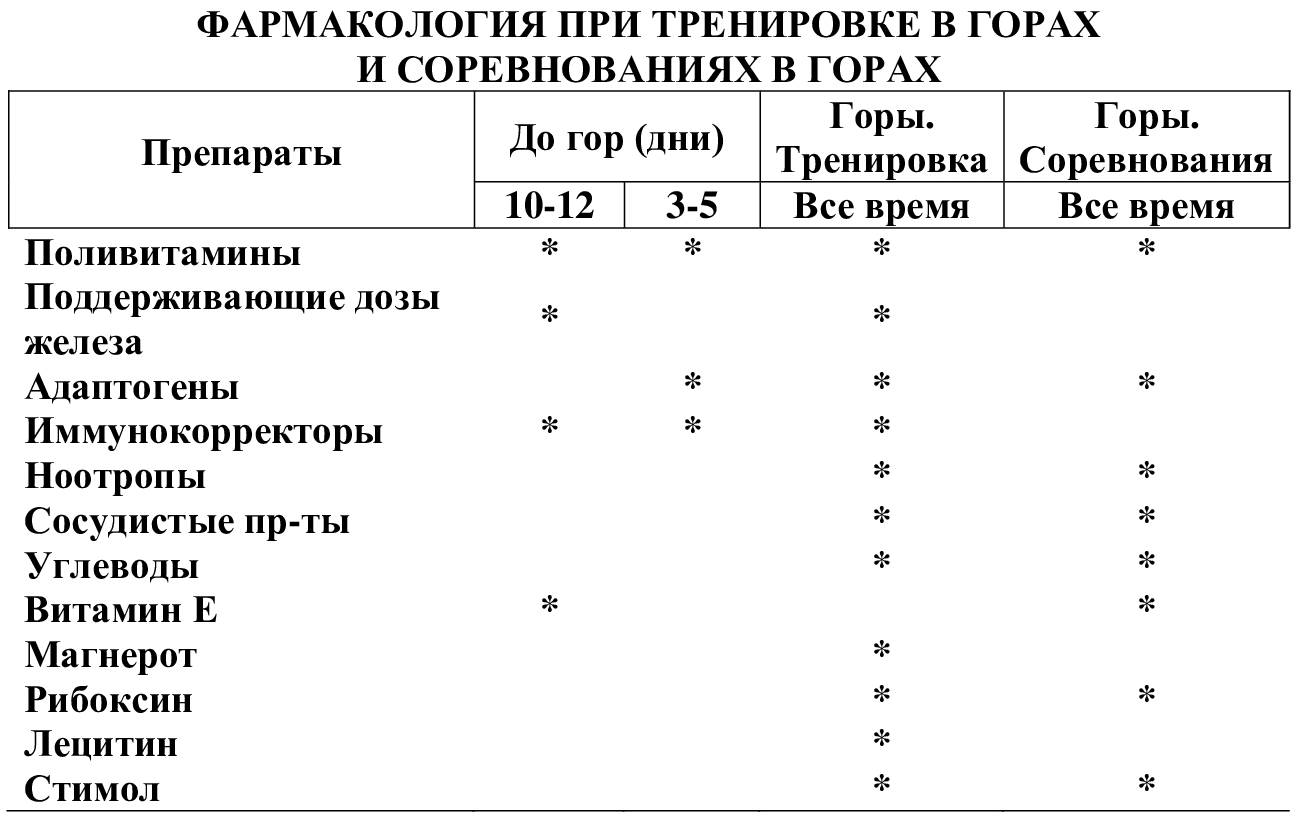 Фармакологическая поддержка во время тренировок в горах должна соответствовать этапу подготовки.